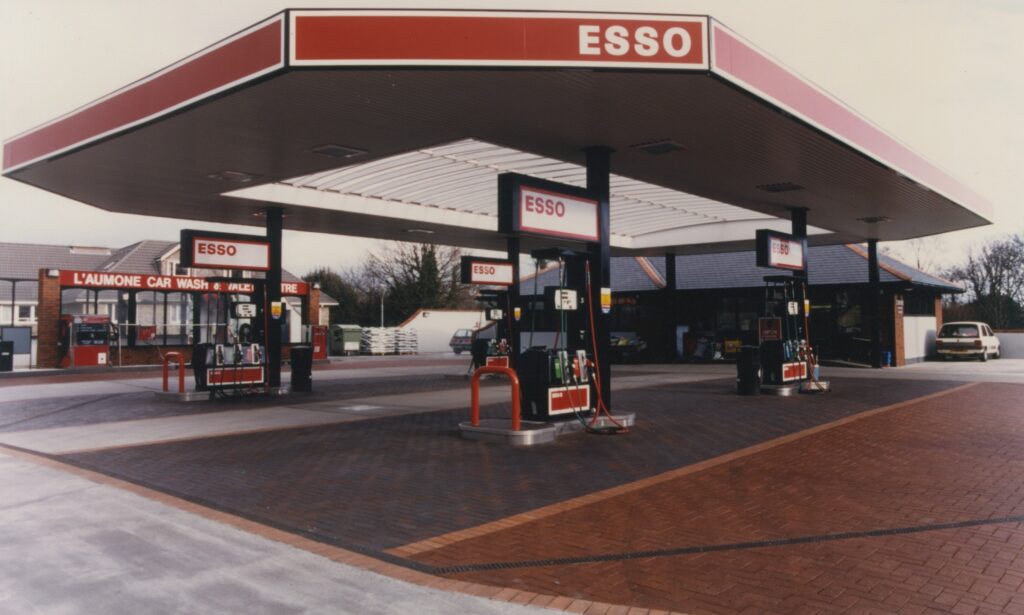 While the L’Aumone Garage, Castel was still up and running, Rihoy & Son erected the modern forecourt and transparent canopy feature, car wash and shop area.