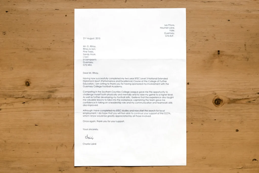 Rihoy & Son supports a wide range of island sport initiatives, and was delighted to hear from one of the Guernsey College Football Academy players it has sponsored recently. Midfielder Charlie Lainé, who has now successfully completed his two-year BTEC Level 3 National Extended Diploma in Sport at the College of Further Education, contacted the company to inform them of his achievement and to thank them for their support.
